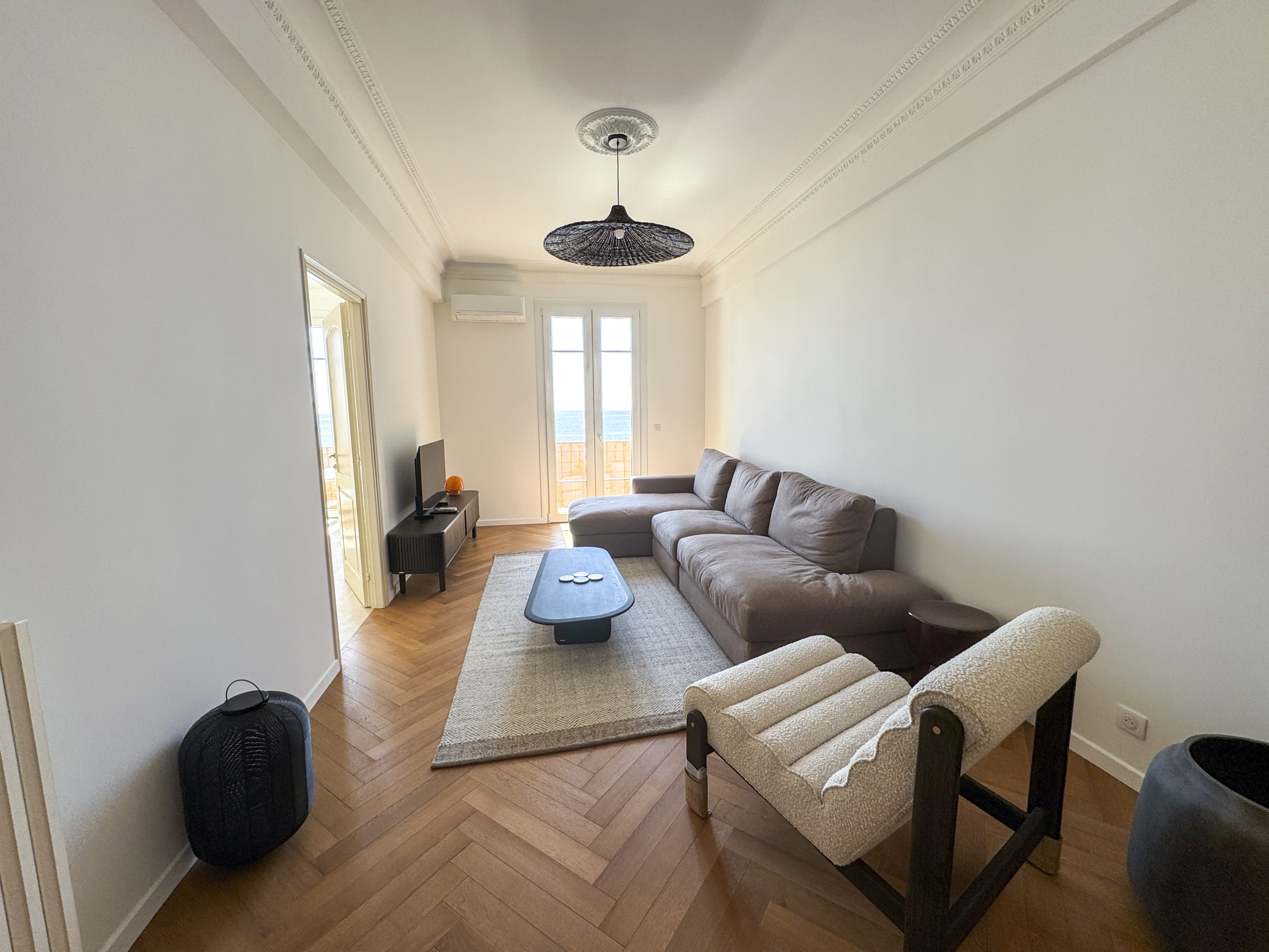 Ideally located on the Promenade des Anglais, on the 4th floor of a prestigious building, this beautifully renovated 2-bedroom apartment offers an exceptional seafront setting.