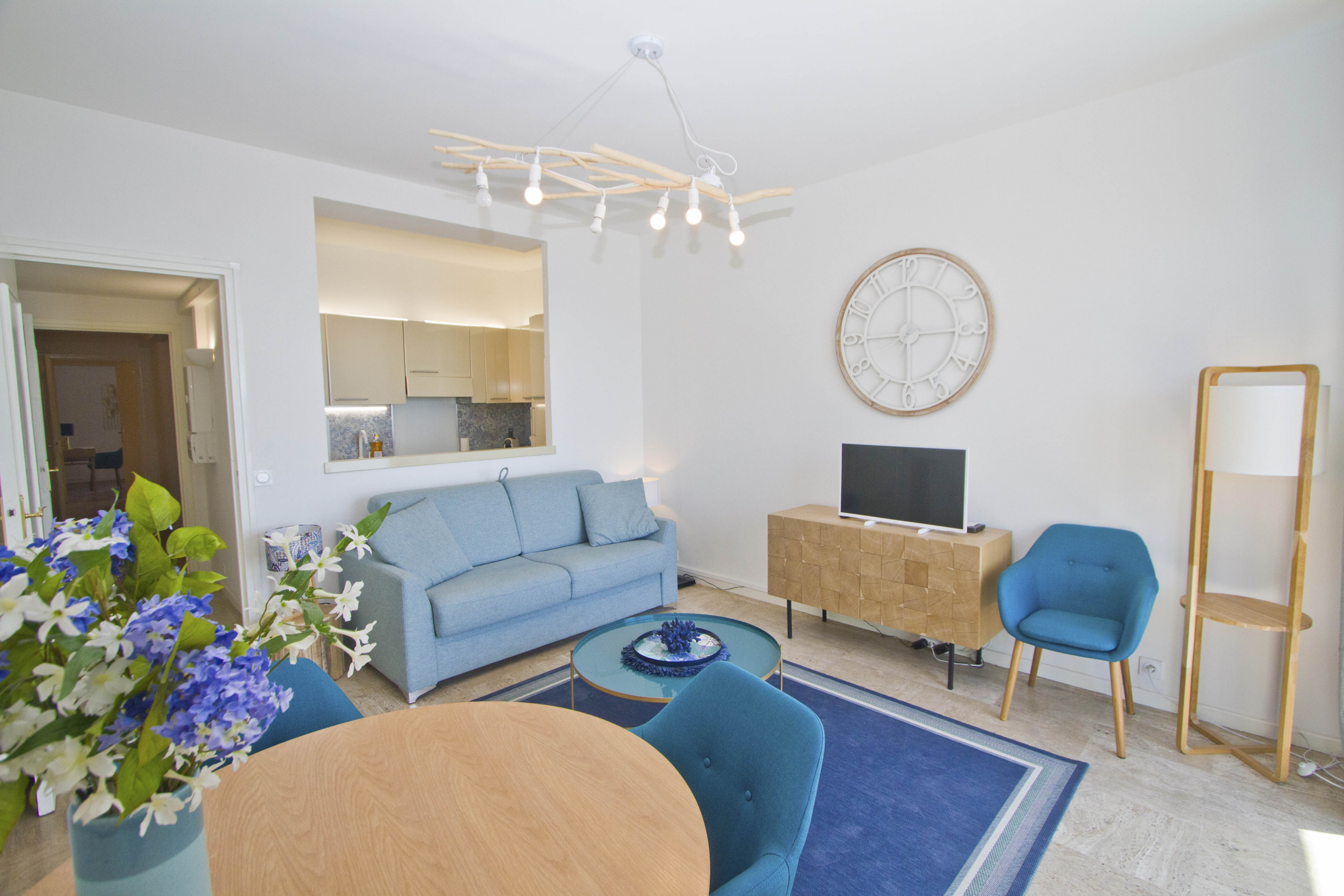 The beautiful horizon blue living room with sea view will give you the impression of being on the water.