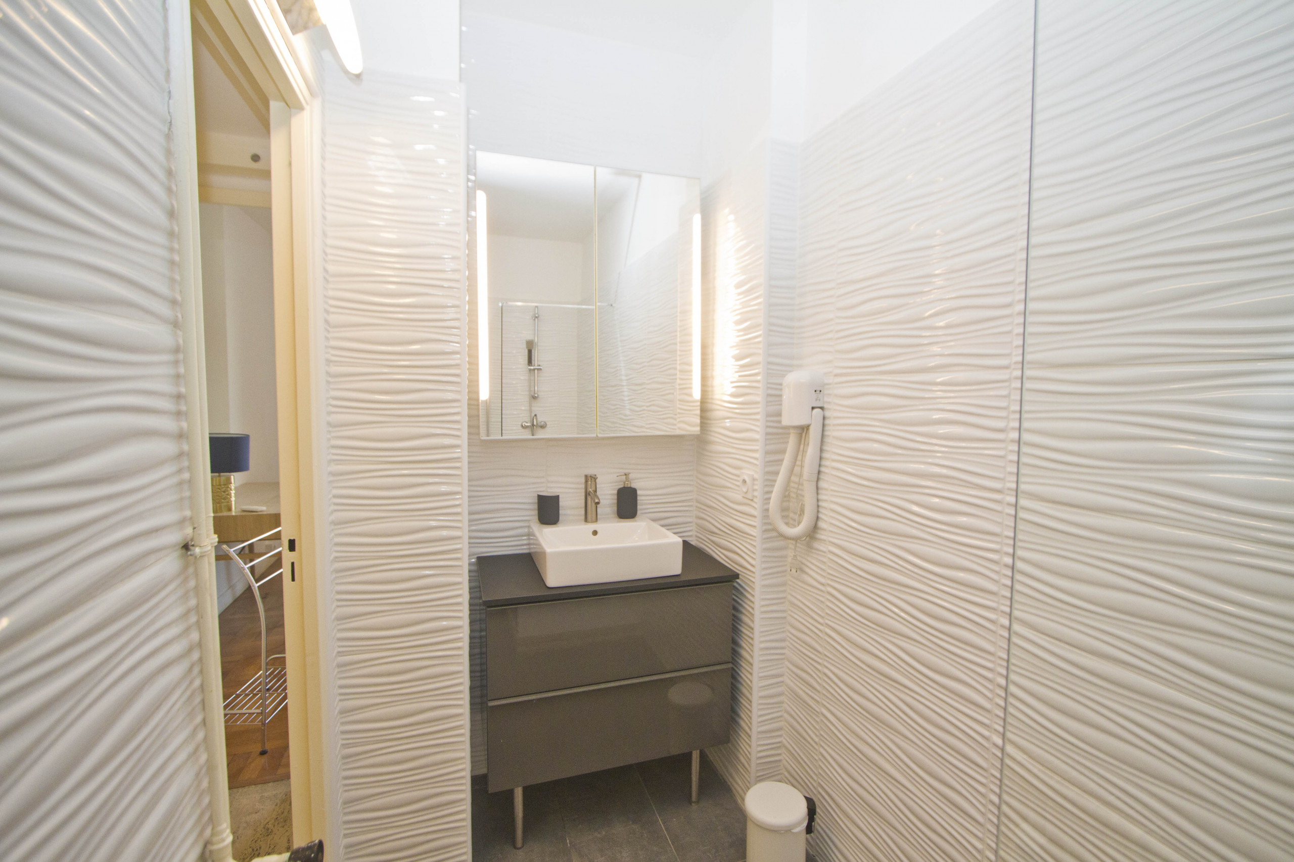 Modern and comfortable, it has a beautiful bedroom in the colors of the Thousand and One Nights, air-conditioned and quiet with a small office area as a bonus.