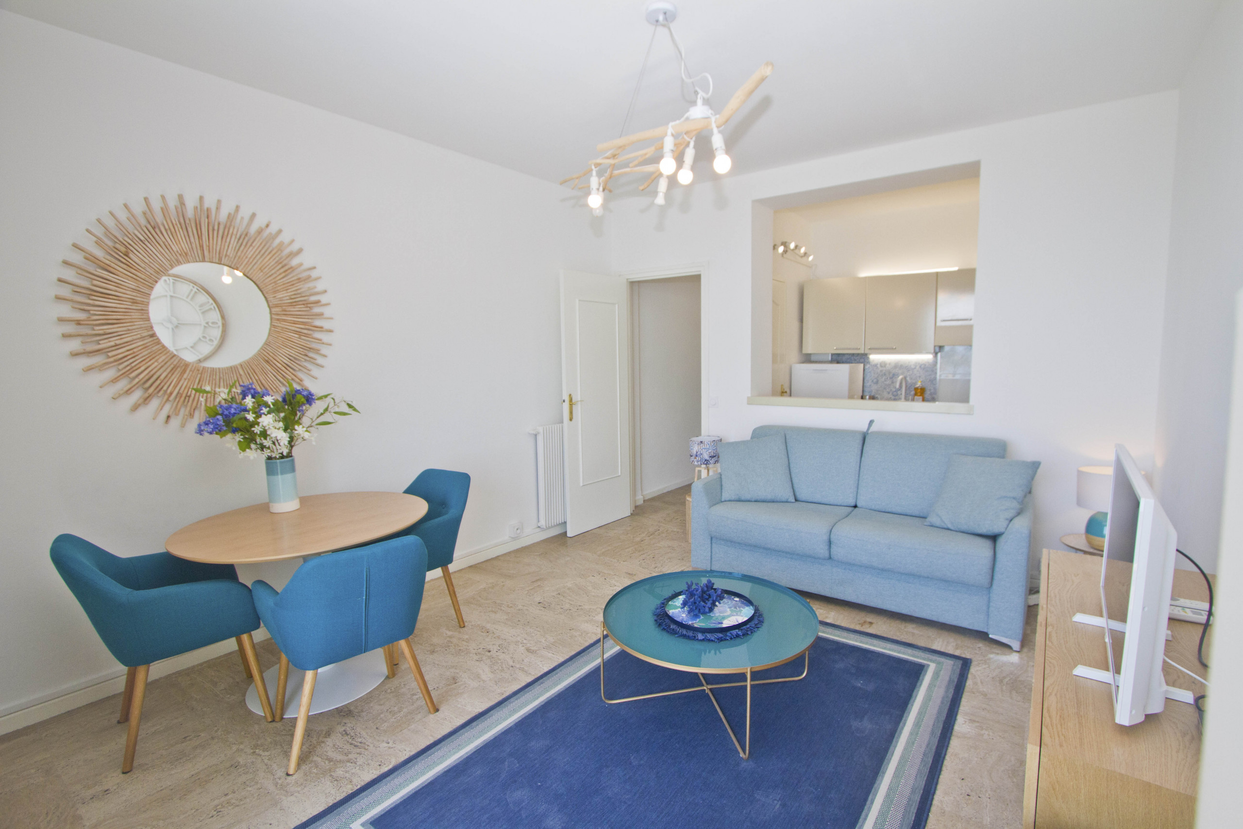 Le très beau salon couleur bleu horizon avec vue mer vous donnera l’impression d’être sur l'eau.