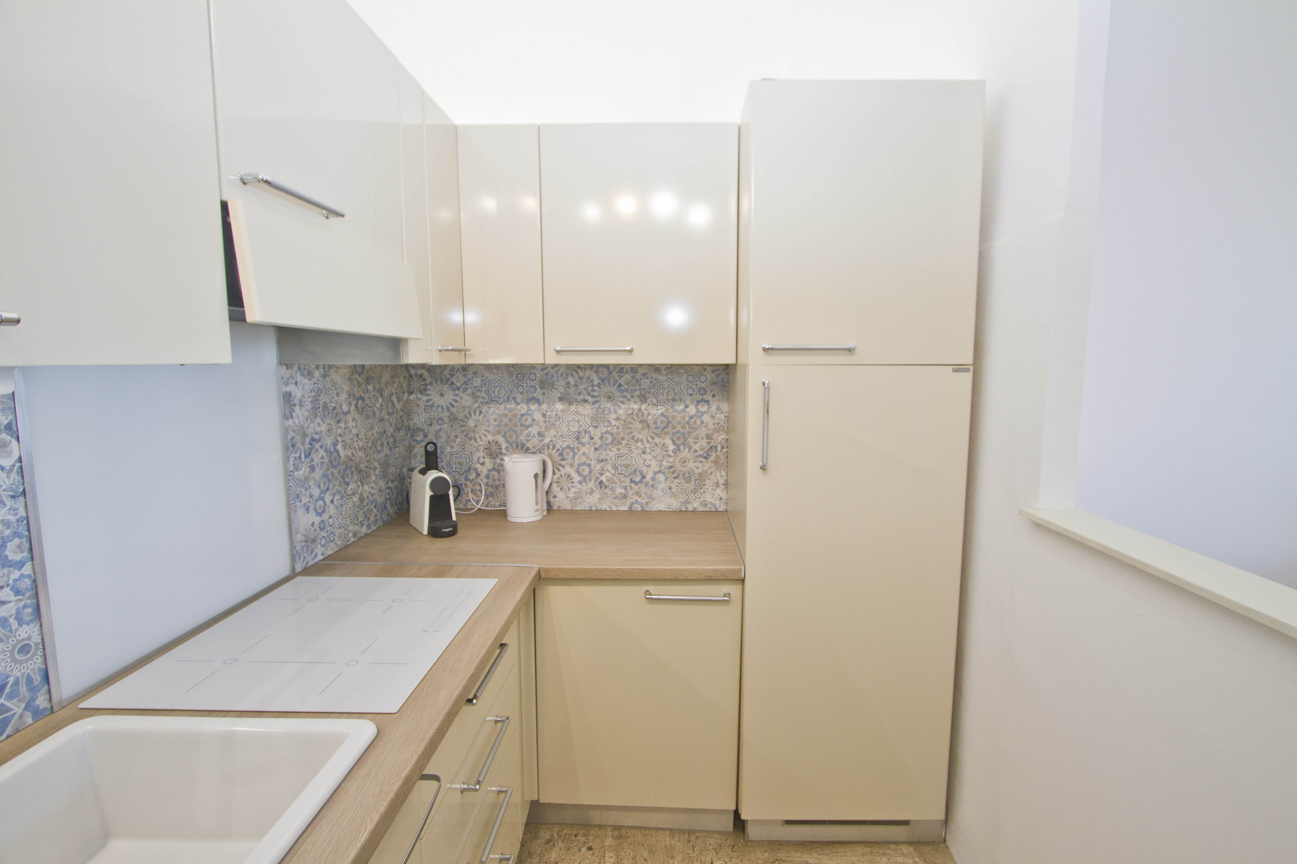 Кухня, совмещенная с залом, оснащена индукционной плитой, оборудовано холодильник, микроволновая печь, духовка, посудомоечная машина, столовые приборы, кухонная утварь, кофеварка, тостер и Чайник.